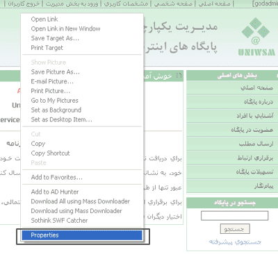برای این‌که تصویری از تصاویر پایگاه خود را تغییر دهید، کافی است روی آن راست کلیک کنید و گزینه properties را انتخاب کنید. با انجام این کار می‌توانید از محل قرار گیری آن فایل در پایگاه خود آگاه شوید و با کمک ماژول پوشه‌ها و فایل‌ها یا بخش تنظیمات قالب ها آن را عوض کنید.